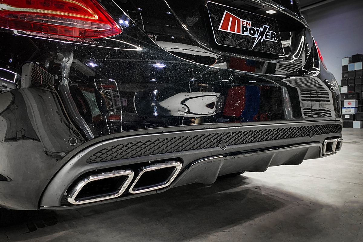 BENZ C63 C63S W205 原廠樣式 四出尾飾管+鯊魚鰭後下巴