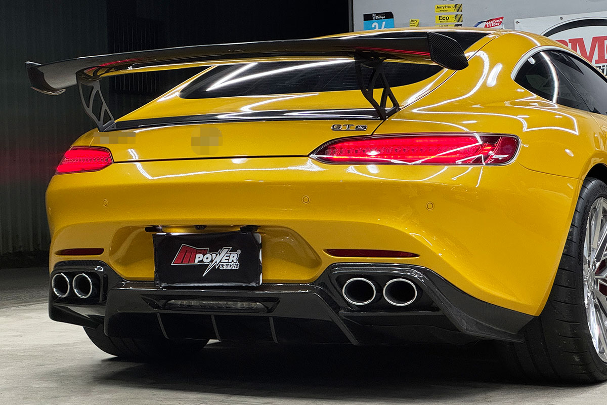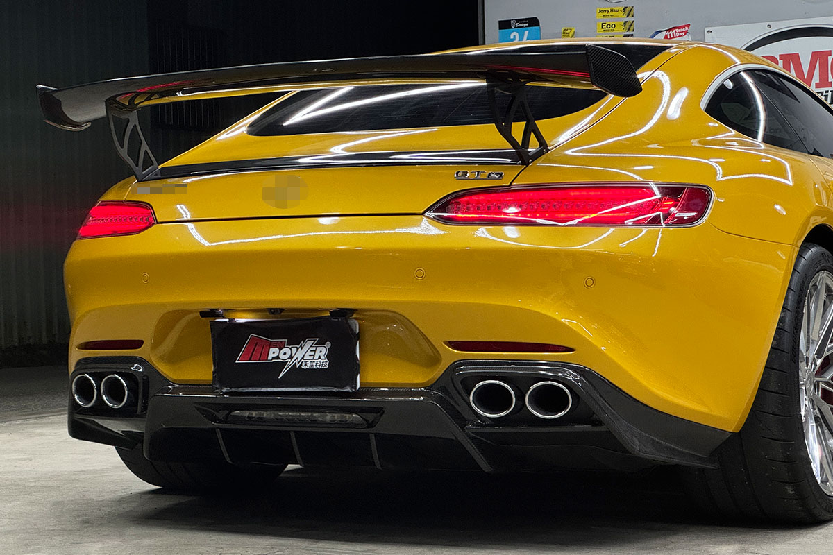 賓士 Benz AMG GTS C190 正碳纖維空力套件 前下巴+側裙+後下巴+高尾翼+四出尾飾管
